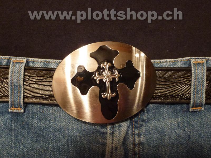 Buckle Cross Kreuz im Kreuz schwarz Symbol oval