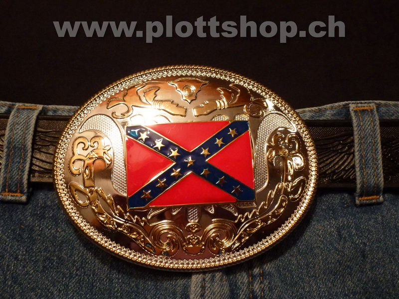 Buckle Rebel Flag Redneck chrom- und goldfarben US, Südstaaten USA, Fahne, grosser Buckle, Big Buckle