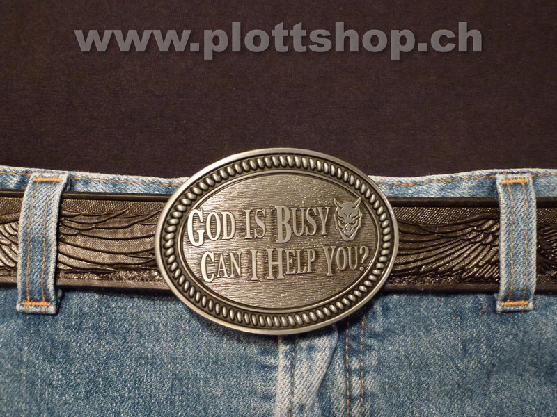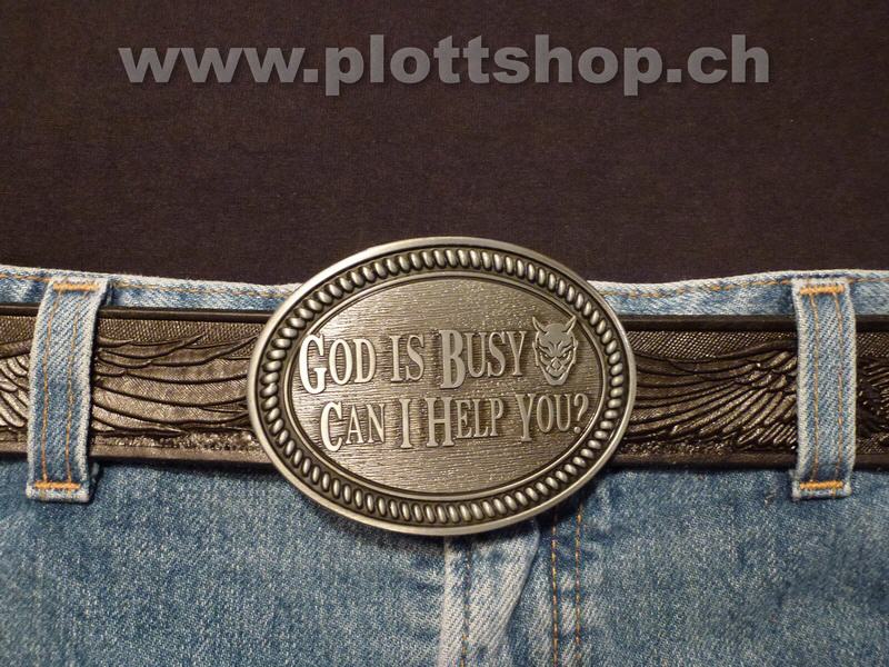 Buckle God is busy - Can I help you? Devil Teufel, Gott ist beschäftigt, kann ich Ihnen helfen