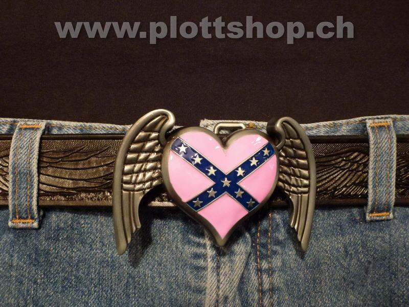 Buckle Heart Herz Rebel Flag pink Südstaaten