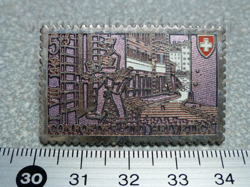 Pin Briefmarke Helvetia 5 + 5 gross