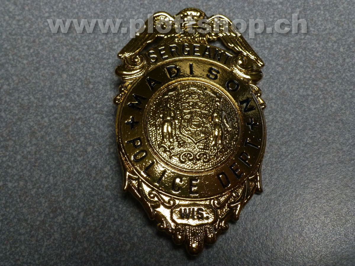 Sie sind hier: Startseite » SAMMELN » Badges Police Police Badge - Sergeant Police Department Madison Originalgetreue Sammleranfertigung, in aufwändiger Prägearbeit hergestellt. Absolute Detailtreue und top Verarbeitung. Schwere Qualität. Für eine grössere Ansicht, klicken Sie auf die Fotos. Aktion war erfolgreich Das hat leider nicht geklappt. Warenkorb anzeigen Zur Kasse gehen Weiter einkaufen Lieferbar in 3-5 Werktagen 80.00 CHF 0% MWST. zzgl. Versand Anzahl: St In den Warenkorb Auf den Merkzettel