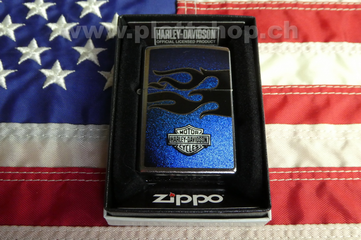 Zippo Harley Davidson HD Logo Flammen blau met